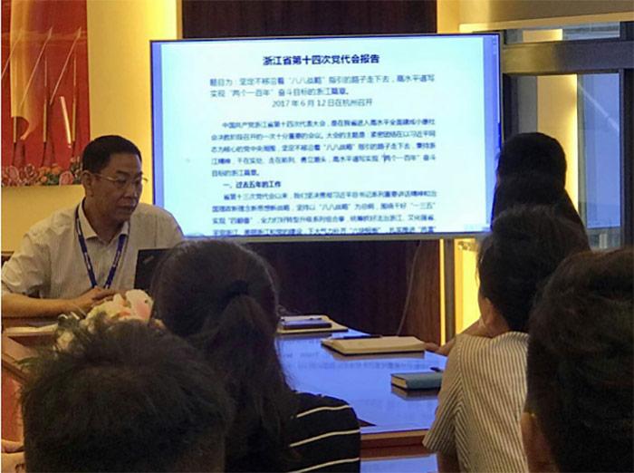 6月21日下午5時,浙江維融電子科技股份有限公司黨支部組織黨員、預(yù)備黨員、入黨積極分子學(xué)習(xí)“浙江省第十四次黨代會”報告精神,會議由支部書記魏宏枕主持。