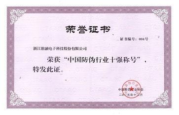 中國防偽行業(yè)十強(qiáng)稱號(hào)